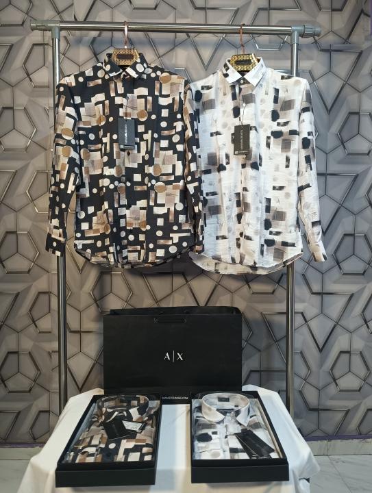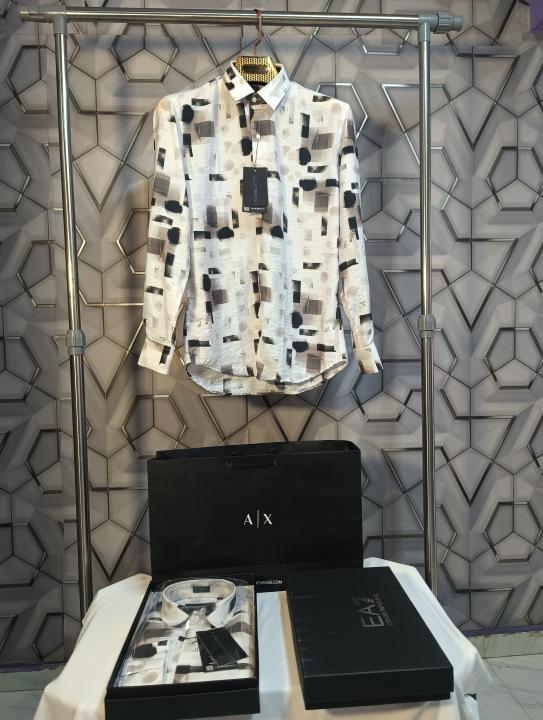 Home Shirts Armani_Exchange_White_Printed_Premium_Exclusive_Shirt_With_Box_Packing_And_Carry_Bag_(1952)