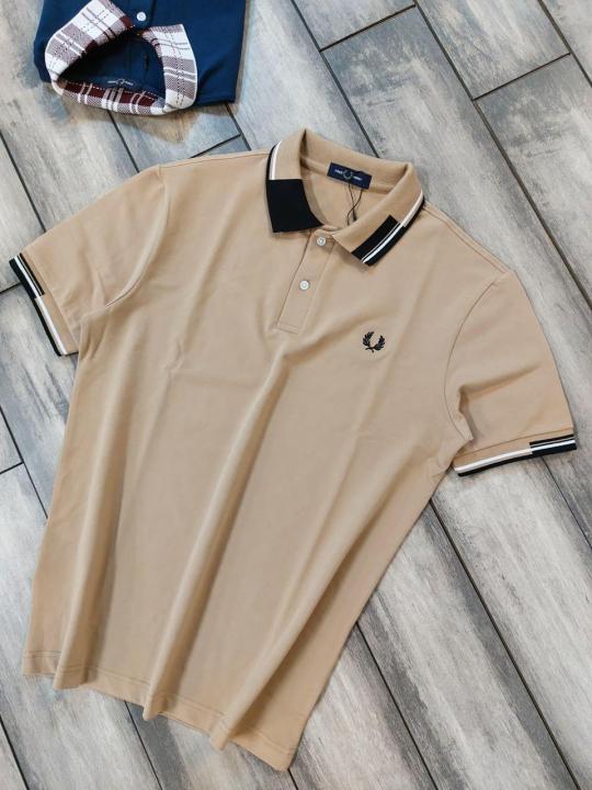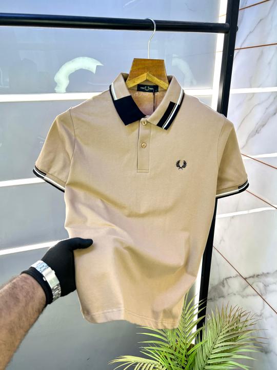 Home T-Shirts Fred Perry Beige Polo Premium Collar Neck T-shirt F2872-BE
