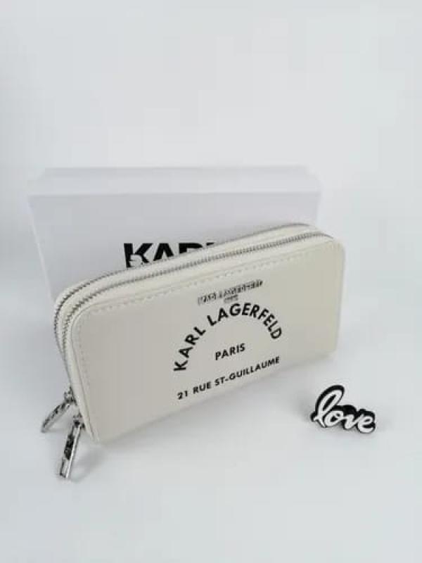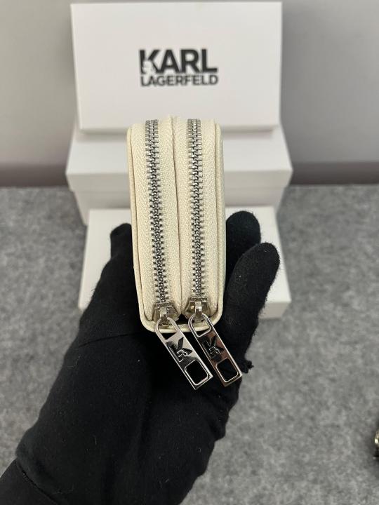 Karl Lagerfeld Dual Zip 76 Wallet With Original Box Dust Cover & Brand Paper KS016 White