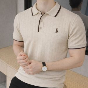 Ralp h Lauren Polo Imported knitted Cream Super Premium Collar Neck T-shirt F3556-CR