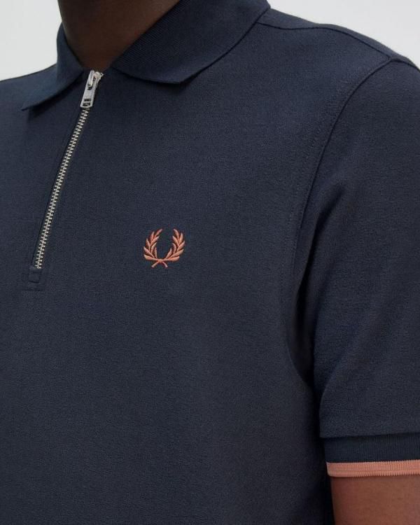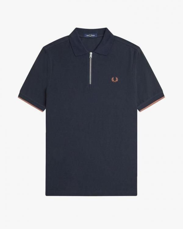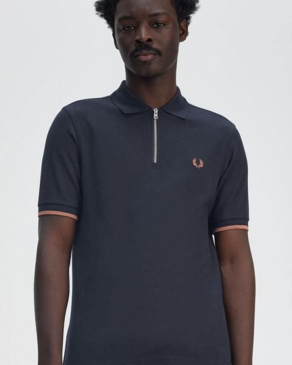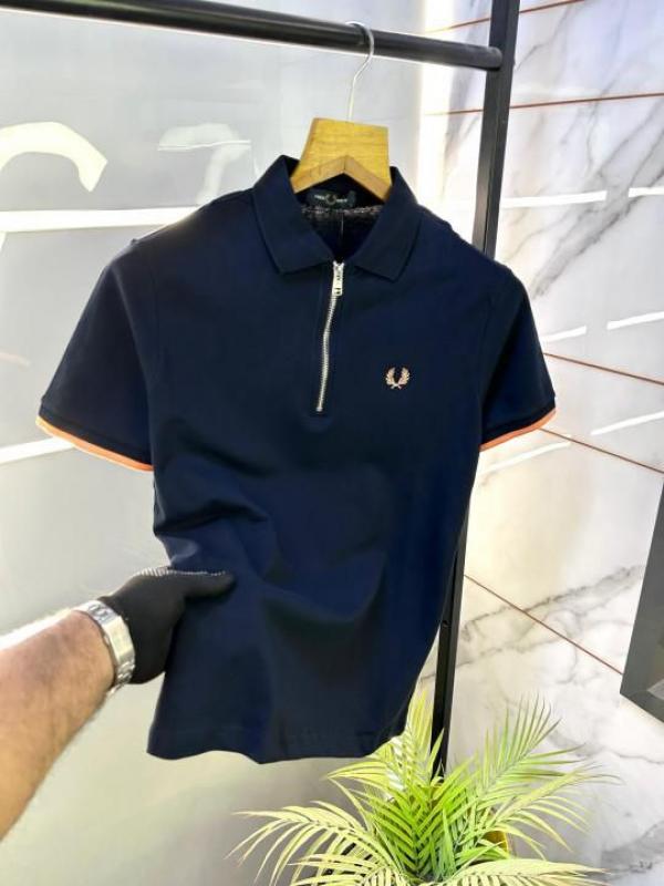 SALE Fre_d Perry Navy Blue Zipper Premium Polo Tshirt